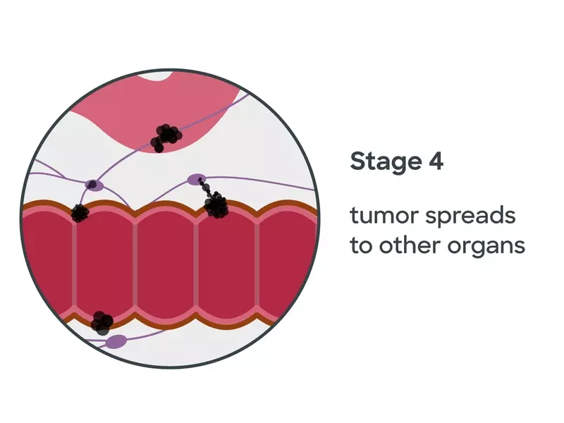 Stage 4 rectal cancer has reached the most advanced stage. While earlier stages only involve the rectum, nearby organs and lymph nodes, stage 4 rectal cancers have spread to parts of the body far away from the original tumor in the rectum. Some common places that rectal cancer spreads include the liver, lungs or ovaries. You may hear the terms “distant cancer” or “metastatic cancer” to describe this stage.