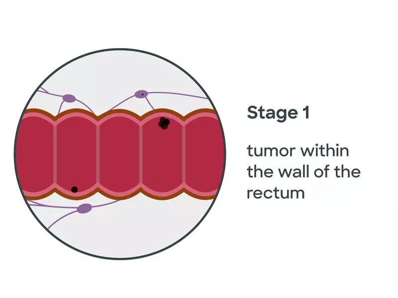 In stage 1, rectal cancer has begun to spread into deeper layers of the tissue, but it’s still only located within the wall of the rectum. It isn’t found in other tissues, organs or lymph nodes.