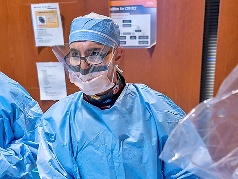 Traditionally, interventional cardiologists perform cardiac catheterization using a puncture in the leg, but studies have shown going through the wrist—using the transradial approach—produces the same results with a shorter hospital stay and less bleeding or discomfort for the patient.